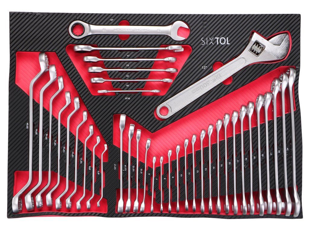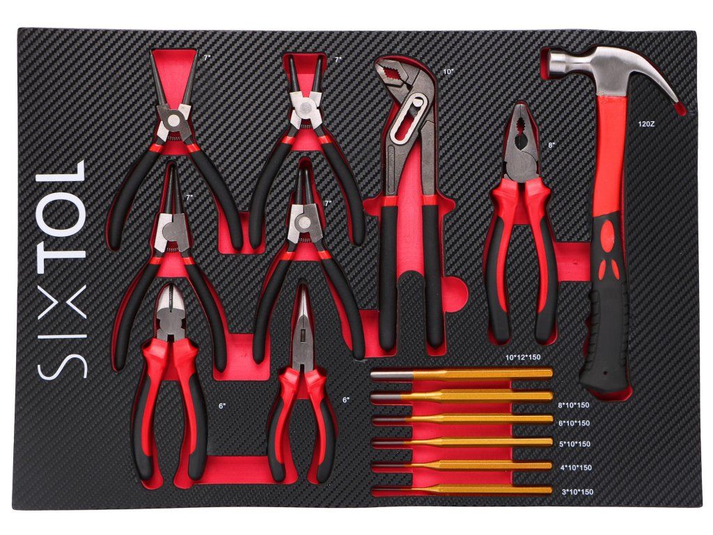 Praktické a kompletní řešení pro každodenní servisní práce v dílně i garáži. Dílenský vozík SIXTOL MECHANIC TROLLEY KEVIN 326 nabízí 7 zásuvek a pečlivě sestavenou sadu 326 ks nářadí, která je přehledně uložena v odolných EVA pěnových vložkách pro maximální organizaci a rychlou práci.