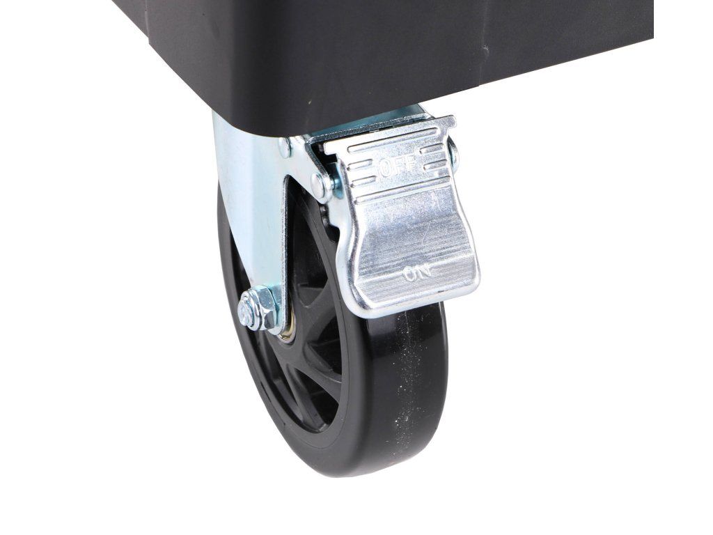 Tělo z ocelového plechu SPCC zvládne i vysoké zatížení. Díky 5" kolečkům a brzdě na dvou z nich je manipulace bezpečná a stabilní i při plně naloženém vozíku.