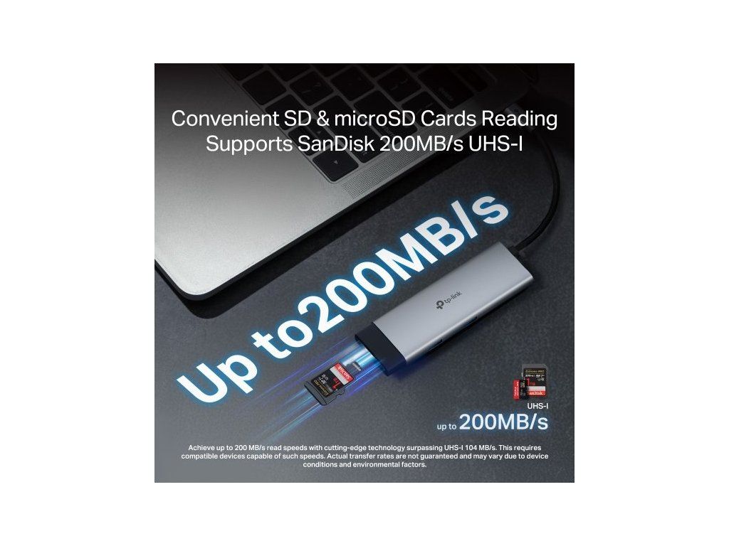 - Rychlá čtečka SD/microSD karet s rychlostí až 200 MB/s