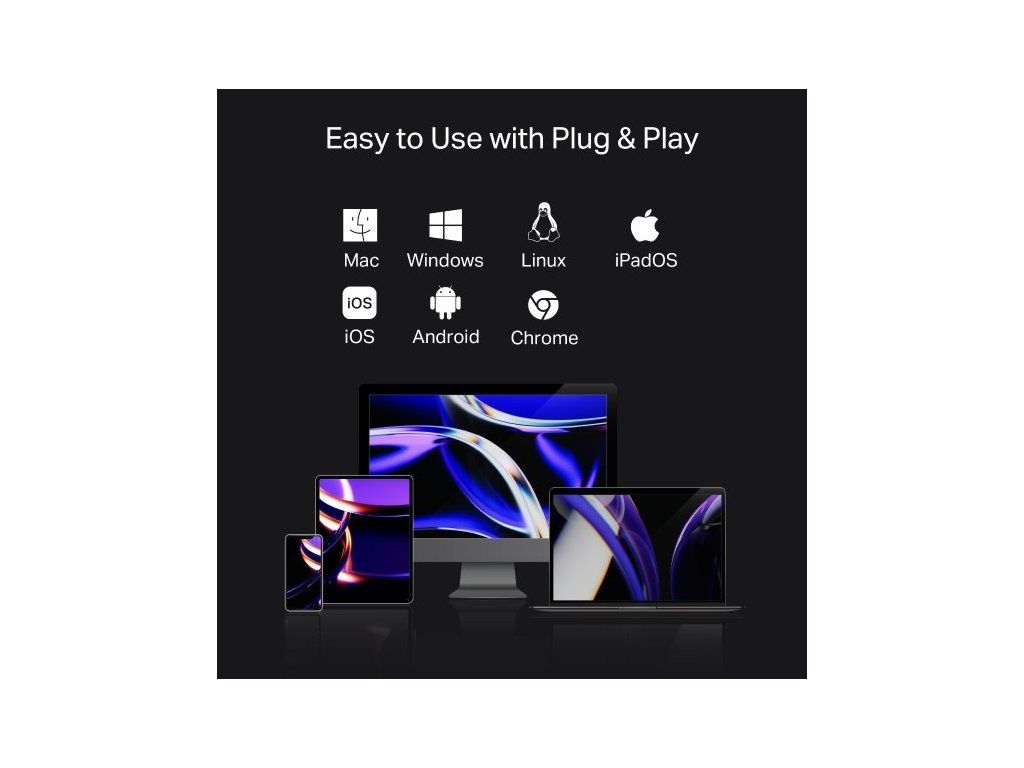 Rozšiřte možnosti svého zařízení s dokovací stanicí TP-Link UH9120C. Na jednom kompaktním zařízení se nachází celkem 9 portů. Najdete na něm port HDMI s podporou rozlišení 4K při 60 Hz, port s podporou gigabitového Ethernetu, slot na SD/microSD kartu, podporu 100W napájení a superrychlé USB porty (až 5 Gb/s). Díky snadné Plug & Play instalaci je stanice ideální pro každodenní práci i zábavu.