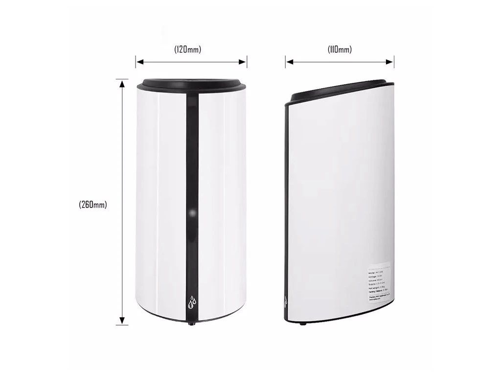 Automatický dávkovač DROP Gel je dostupný ve dvou barevných provedeních, bílé a stříbrné barvě. Tělo přístroje je vyrobeno z odolného ABS plastu.