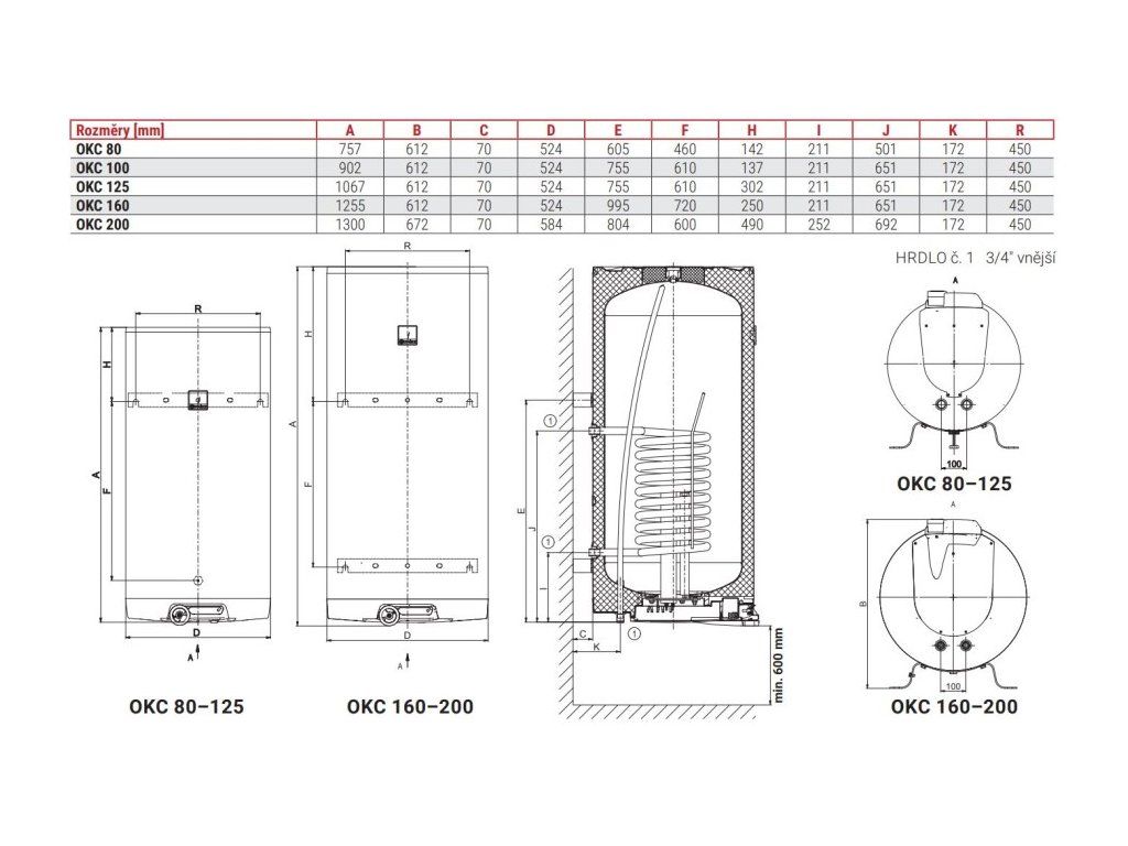 DRAŽICE OKC 200 kombinovaný ohřívač zásobníkový 194l, 1 výměník elektrický, závěsný, 1107208101