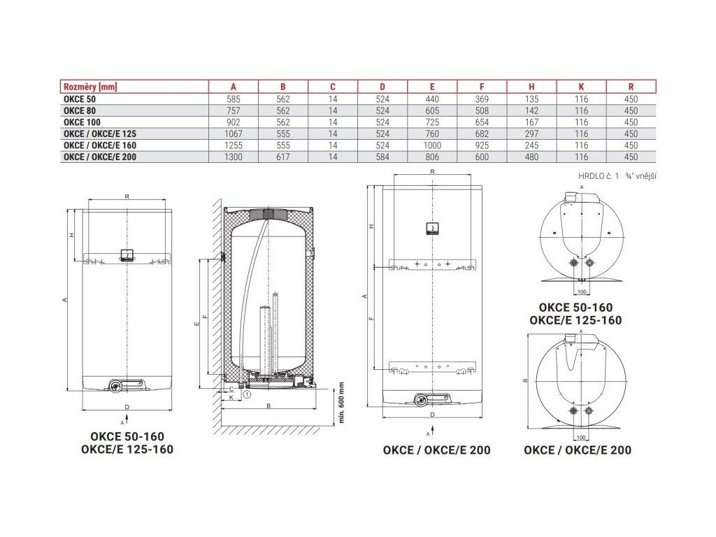 DRAŽICE OKCE 125 zásobníkový ohřívač 122l, elektrický, závěsný, 1103108101