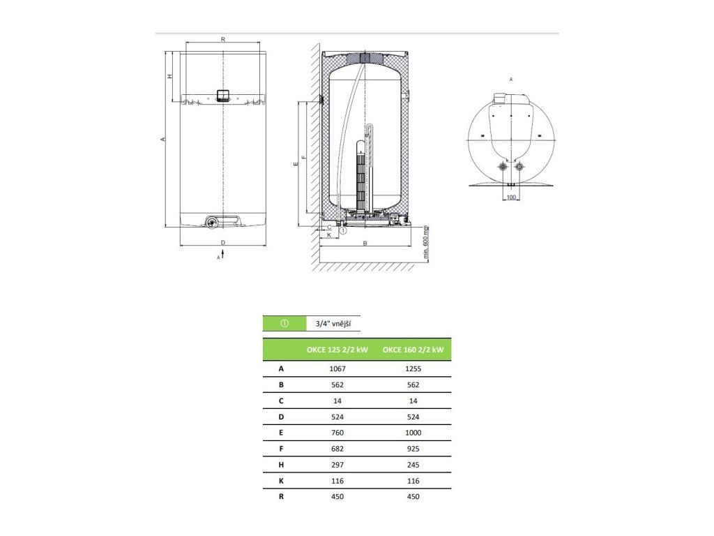 DRAŽICE OKCE 160 2/2kW zásobníkový ohřívač 149l, elektrický, závěsný, 1106108115