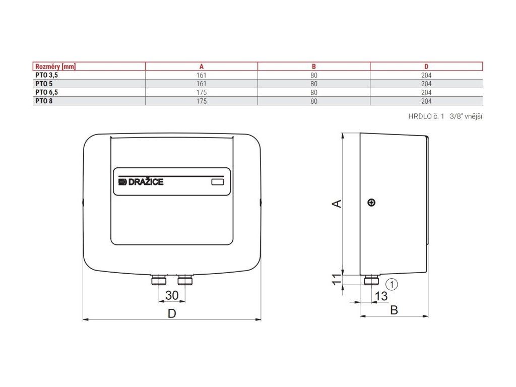 | Typ ohřívače | PTO 3,5 | PTO 5 | PTO 6,5 | PTO 8 |