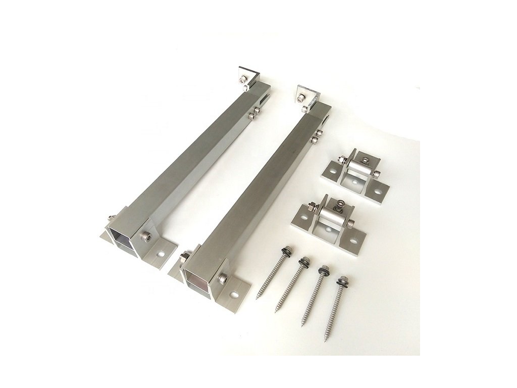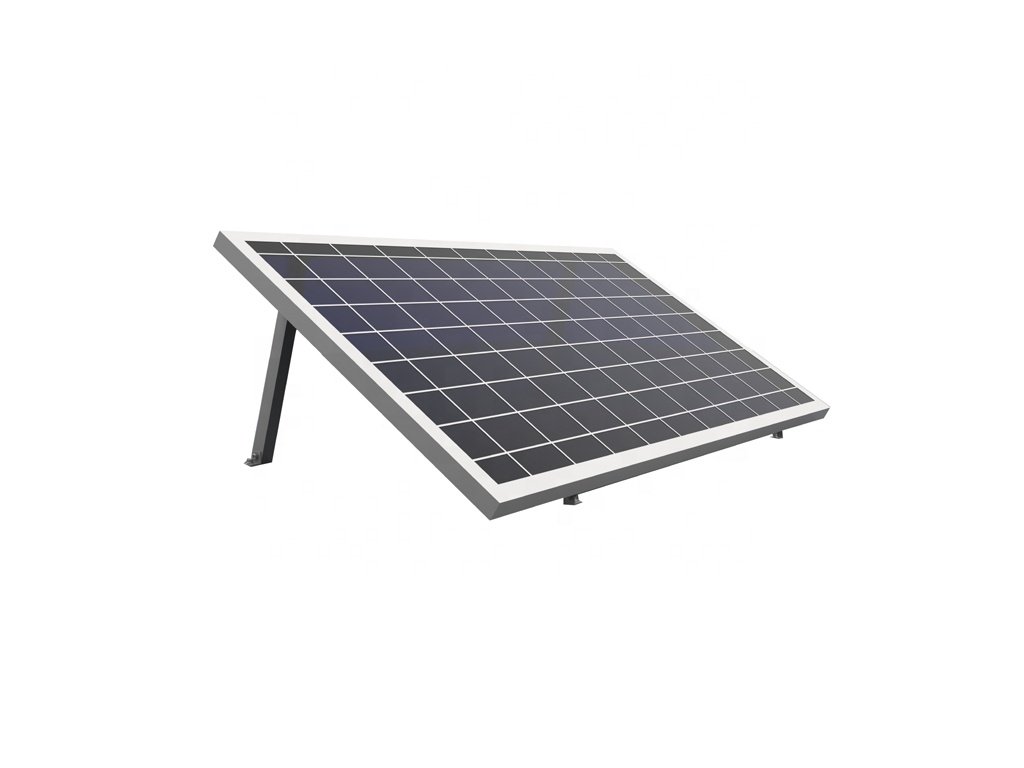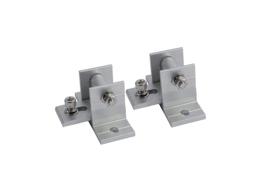 Konzola pro připevnění většího solárního panelu na libovolný rovný povrch – plochá střecha domu, karavanu nebo obytného přívěsu, nastavení náklonu v rozmezí od 30 až do 60° = vyšší účinnost energetické konverze. Eloxovaný hliník. Šedá a stříbrná.