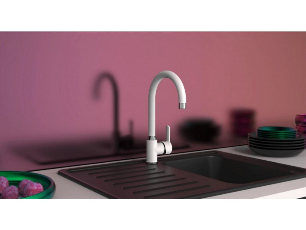 Dřezová baterie Eisl Diziani v trendy barevném provedení v kombinaci lesklý chrom s bílou se stane dominantou kuchyně. Pokud hledáte čistě bílou kuchyňskou baterii např. ke keramickému bílému dřezu, tak Eisl Diziani bílá je opravdu BÍLÁ bez jakýchkoliv teček.