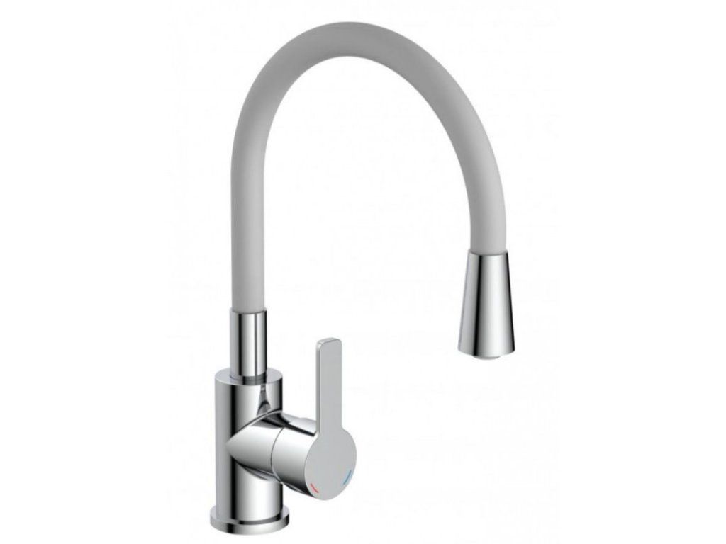 Dřezovou baterii Eisl Flexo nabízíme ve dvou barevných provedení - ohebná hubice ve světle šedé barvě nebo v černé variantě. Díky kombinaci otočného výtoku a ohebné hlavici je baterie ideální volbou pro dvojité dřezy. Kuchyňská baterie disponuje funkcí studeného startu tj. ve středové poloze páky teče pouze studená voda.