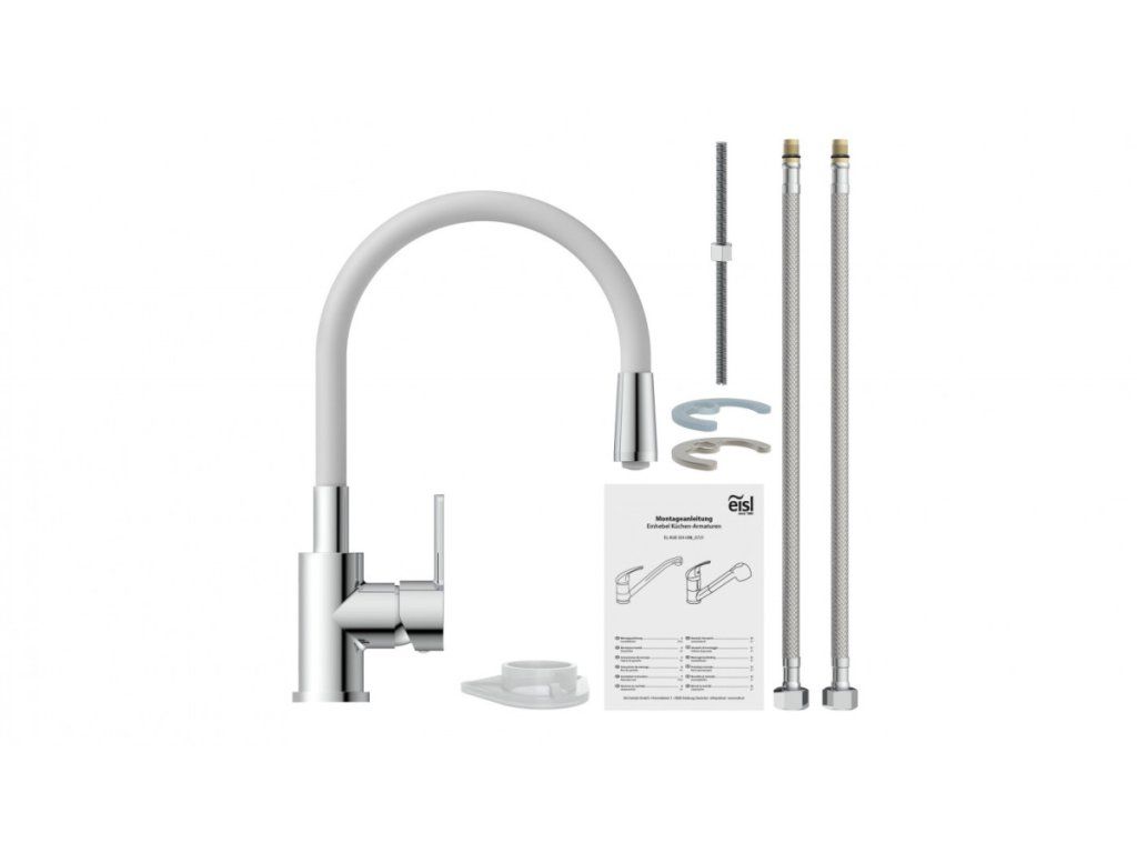 Eisl baterie je vyrobena z velmi kvalitních materiálu (keramické těsnění). Součásti balení je montážní sada a přiložený návod, který usnadní celou instalaci. Balení baterie má dvě připojovací hadice (přípojky pro studenou a teplou vodu). Baterie je vhodná i pro průtokové ohřívače.