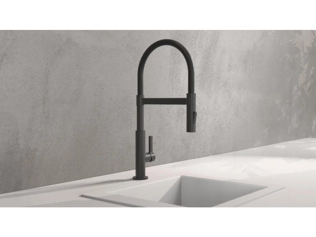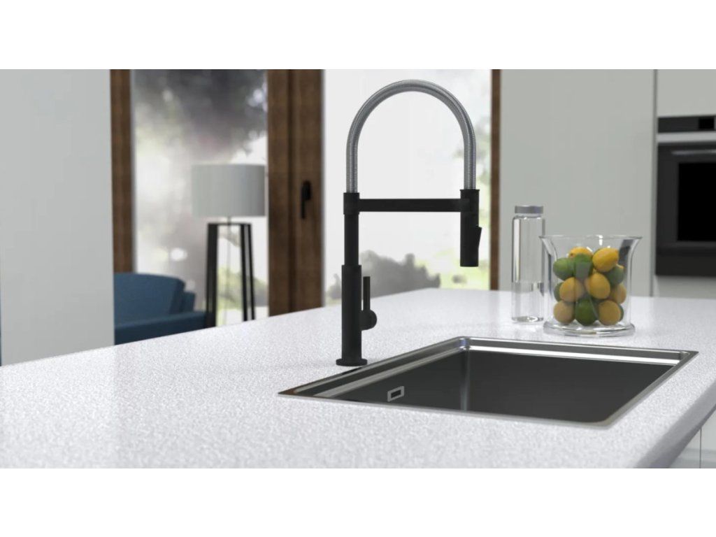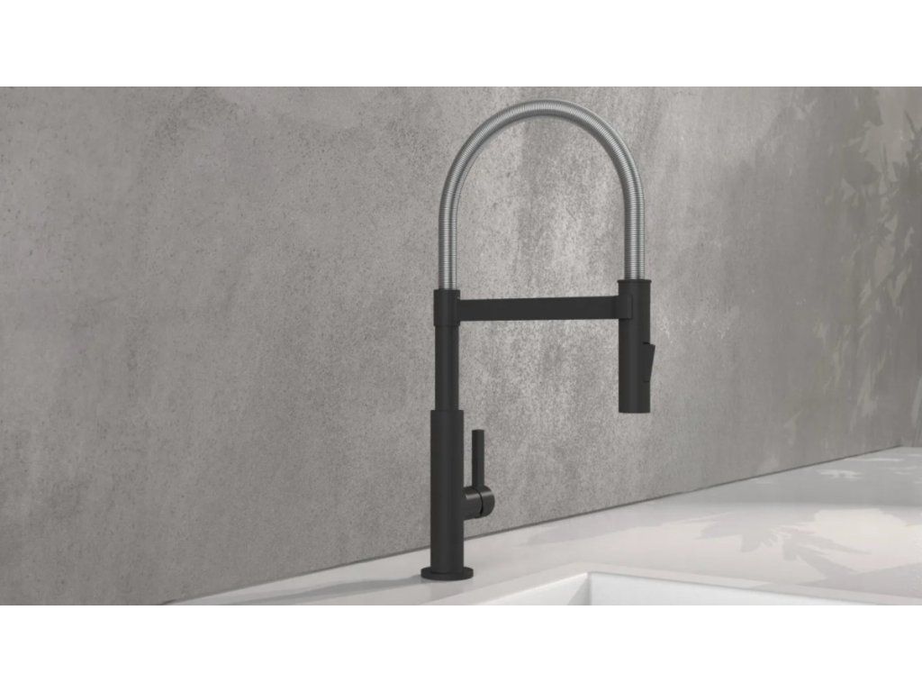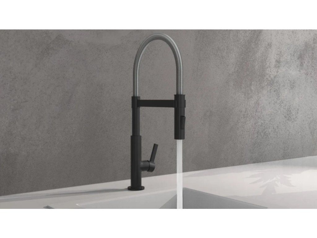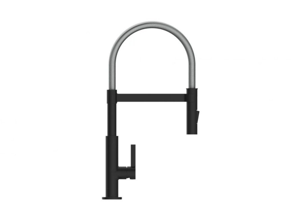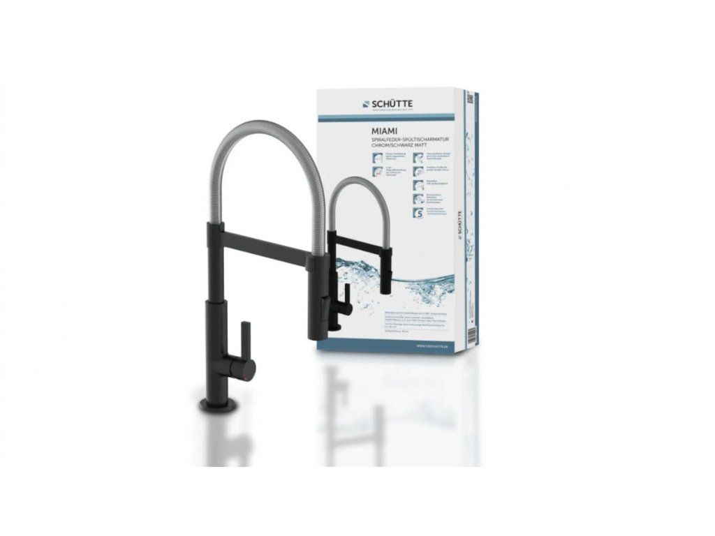 Baterie Miami představuje úspěšné spojení designu a funkce. Vysoce kvalitní výtok se spirálovou pružinou z nerezové oceli s rozprašovačem na nádobí. Černá kuchyňská baterie s výsuvným, dvoucestně nastavitelným sprejem na nádobí pro flexibilní použití. Baterie je vybavena inovativním magnetickým upevněním pro výtok a drží jej ve své poloze.
