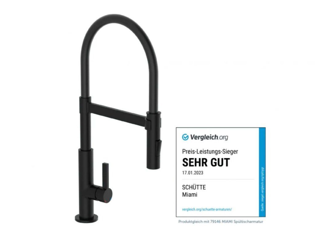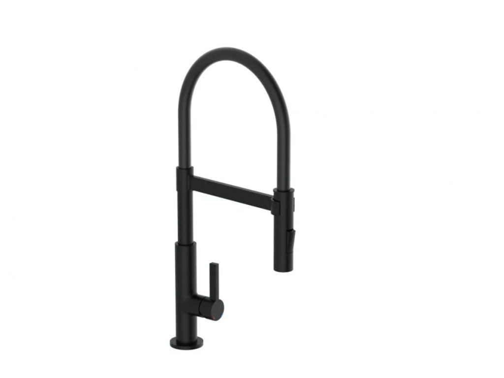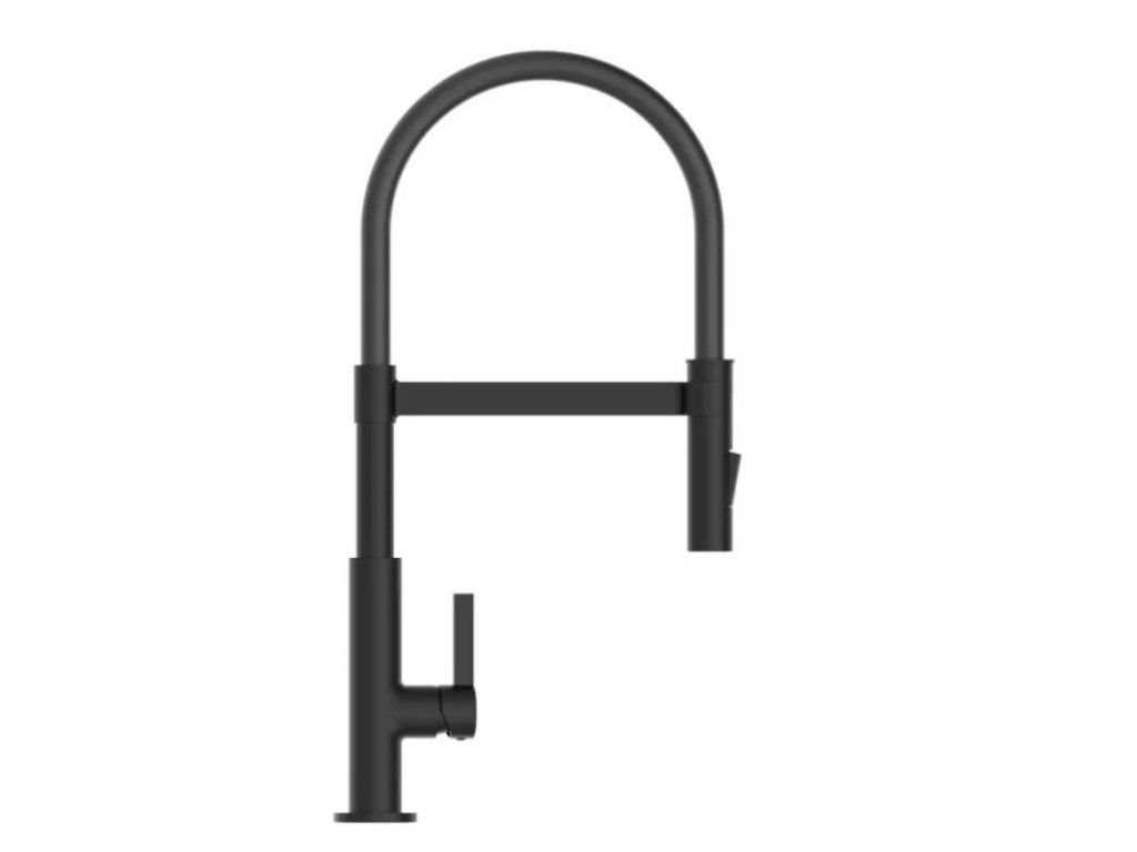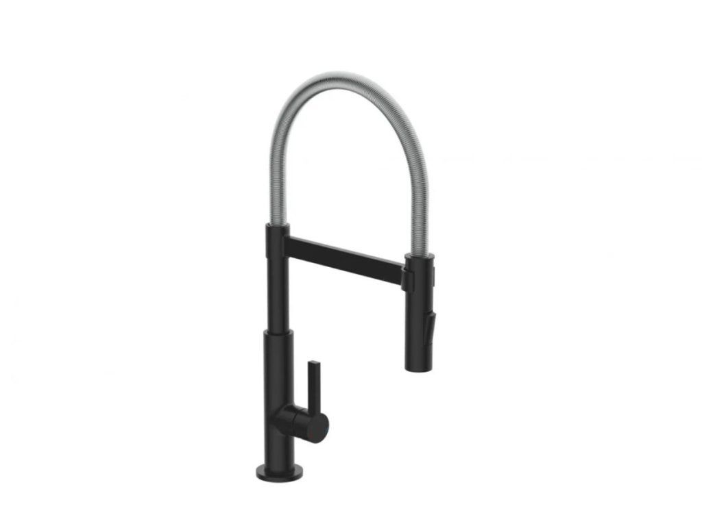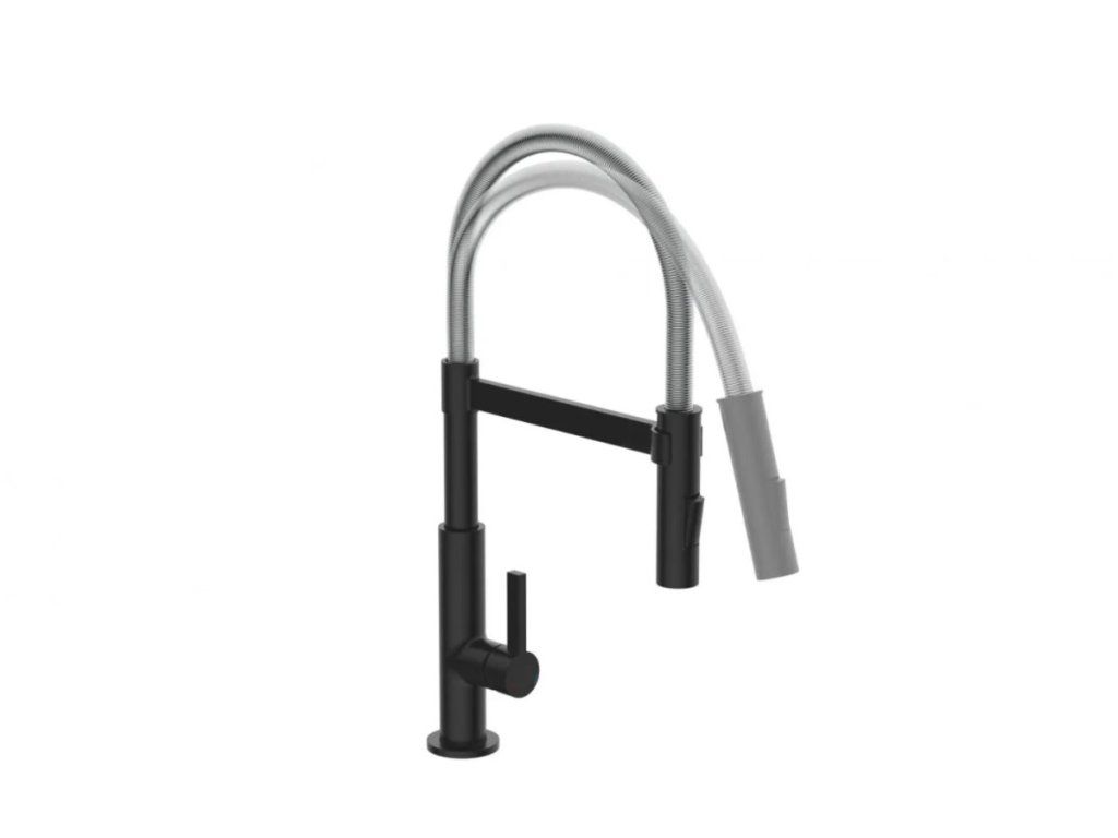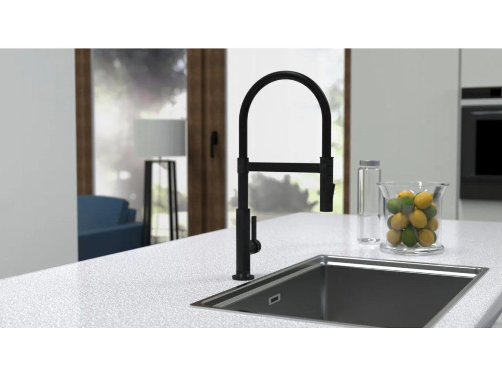 Baterie Miami představuje úspěšné spojení designu a funkce. Vysoce kvalitní výtok se spirálovou pružinou z nerezové oceli s rozprašovačem na nádobí. Černá kuchyňská baterie s výsuvným, dvoucestně nastavitelným sprejem na nádobí pro flexibilní použití. Baterie je vybavena inovativním magnetickým upevněním pro výtok a drží jej ve své poloze.