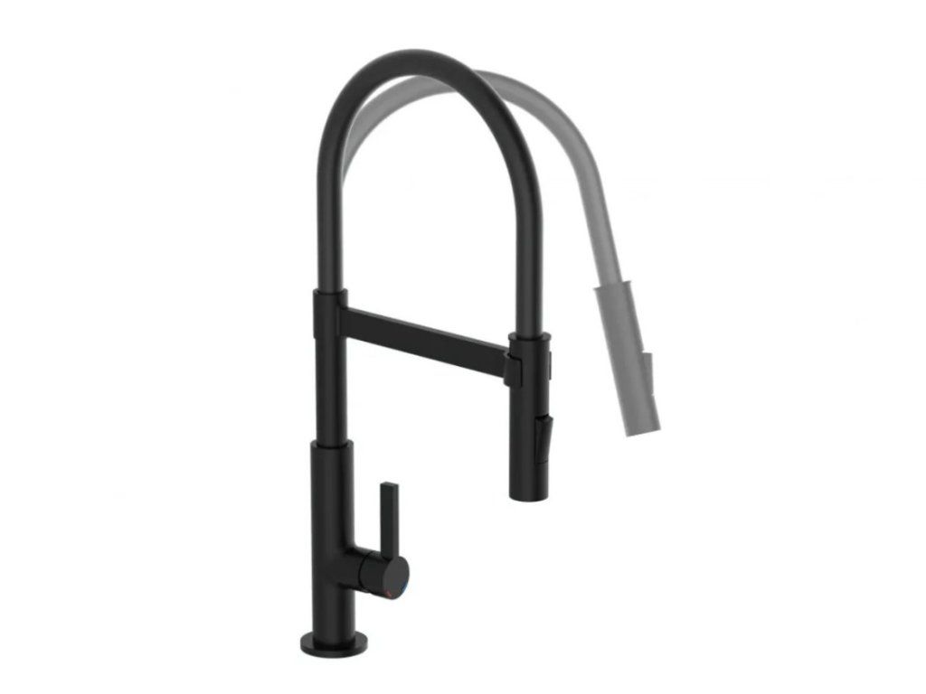 Baterie Miami představuje úspěšné spojení designu a funkce. Vysoce kvalitní výtok se spirálovou pružinou z nerezové oceli s rozprašovačem na nádobí. Černá kuchyňská baterie s výsuvným, dvoucestně nastavitelným sprejem na nádobí pro flexibilní použití. Baterie je vybavena inovativním magnetickým upevněním pro výtok a drží jej ve své poloze.