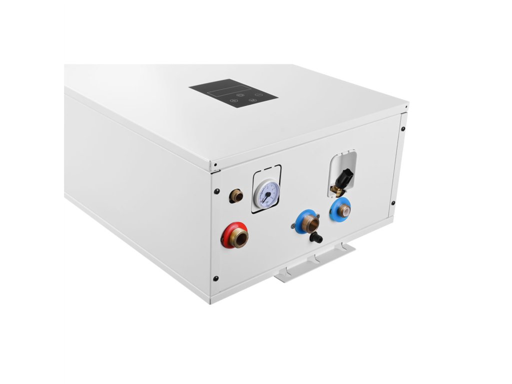 Elektrický kotel EBO má moderní jednoduchý a přehledný ovládací dotykový panel, který umožňuje nastavovat parametry kotle, teplou vodu a také maximální výkon kotle.