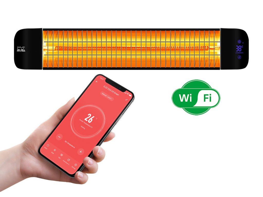 Hlavními výhodami infrazářiče ELÍZ EGH 24 Smart jsou elektronické ovládání a režim inteligentního ohřevu Smart Heating, kdy elektronika automaticky přizpůsobí topný výkon okolní teplotě (Invertor) v závislosti na nastavené teplotě ohřevu. Praktický je i režim snímání lidského těla, kdy se ohřev zapne pouze v případě, pokud senzor zaznamená pohyb lidí v blízkosti ohřívače.
