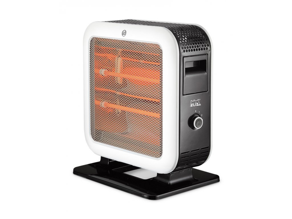Quartzový ohřívač vzduchu, ohřev z obou stran, výkon 1200 W, 4 úrovně výkonu, sálavé teplo, kovové tělo ohřívače, kompaktní design, ochrana proti převrácení.