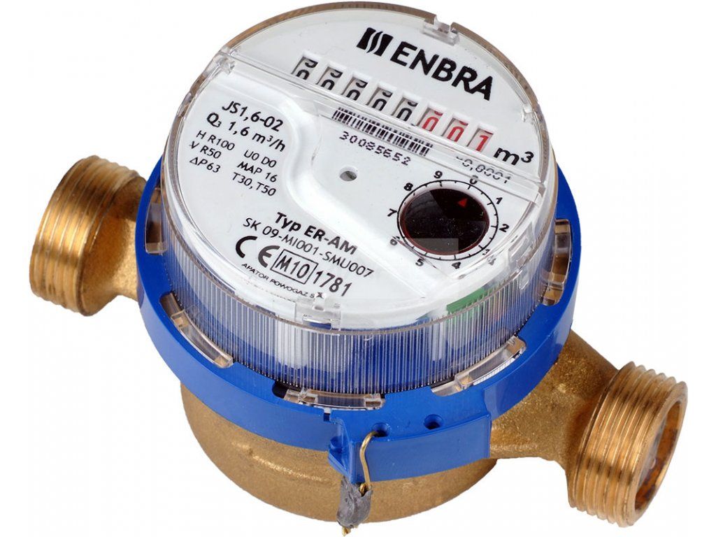 Bytový vodoměr ENBRA ER-AM DN15/SV na měření spotřeby studené vody v bytové jednotce.
