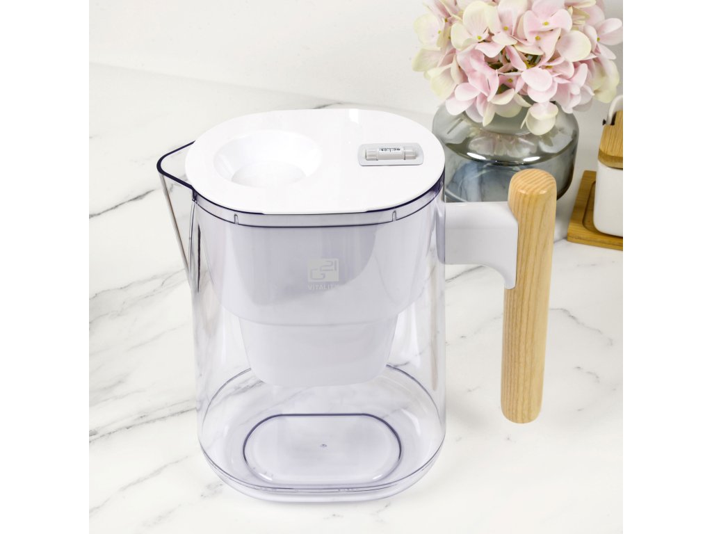 Velice jednoduše. Konvice s celkovým objemem 2,5 l vody má ve víku samostatnou nálevku, takže ji snadno naplníte bez nutnosti sundání víka. Voda se z oddělené nádržky přefiltruje do spodní části konvice a vy si tak do sklenice na pití nebo do varné konvice na čaj či do kávovaru nalijete dokonale čistou a lahodnou vodu bez veškerých škodlivých látek.
