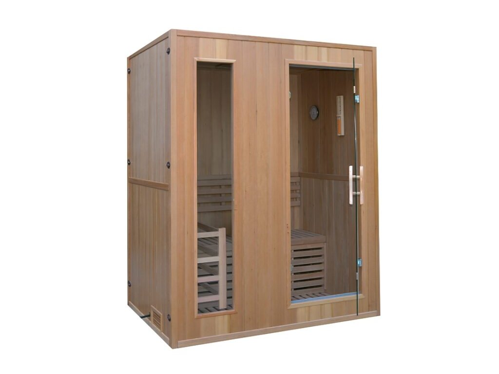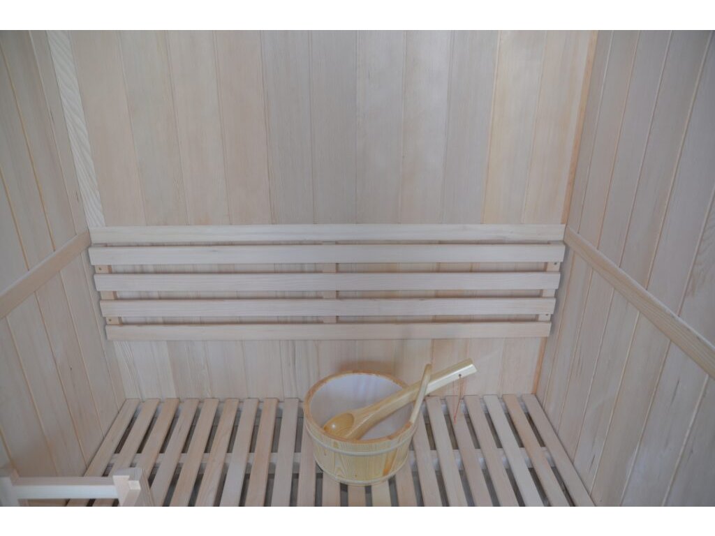 Počet osob: 2-3; rozměry vnější (š x h x v): 1 530 x 1 100 x 1 900 mm; rozměry vnitřní (š x h x v): 1 400 x 1 000 x 1 800 mm; druh dřeva: hemlock; druh topidel: kamna; počet topidel: 1; celkový výkon kamen: 3 600W; Rádio / mp3 / bluetooth: ne/ne/ne; Otáčení dveří L / P: ne; LED barevná terapie: ne; stropní světlo: ne; LED osvětlení lavice: ne; osvětlení vnější: ne; Madlo (vnitřní / vnější): dřevo/dřevo; Ionizátor / tepelné čidlo / Ventilace: ne/ne/ne. Balení - 5 kartonů: rozměr kartonu 1/5: 1 510 x 1 100 x 240 mm, hmotnost: 42 kg; rozměr kartonu 2/5: 1 980 x 1 630 x 1 600 mm, hmotnost: 68 kg, rozměr kartonu 3/5: 1 980 x 1 120 x 1 400 mm, hmotnost: 40 kg, rozměr kartonu 4/5: 380 x 300 x 130 mm, hmotnost: 20 kg, rozměr kartonu 5/5: 260 x 260 x 280 mm, hmotnost: 1 kg; celková hmotnost brutto: 171 kg, hmotnost netto: 135 kg.