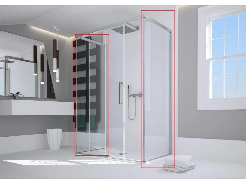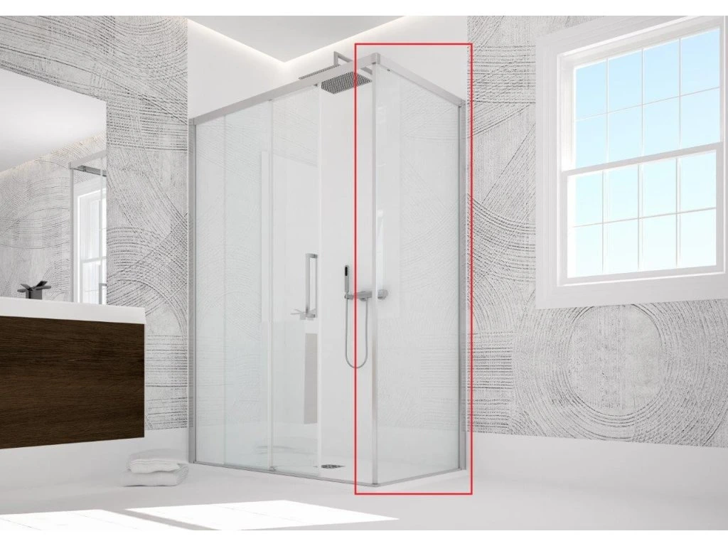 Samostatná pevná stěna ESSENCE F1AB společnosti HOPA. Není určena jako samostatně stojící zástěna, slouží ke kombinaci se sprchovými dveřmi série ESSENCE N1FS, N2FS a A1FS. Kombinací stěny a sprchových dveří vytvoříte sprchový kout.