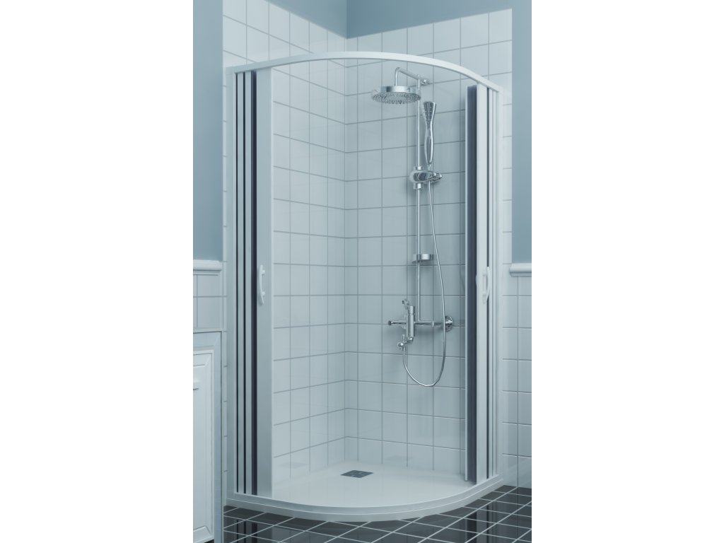 Plastová čtvrtkruhová sprchová zástěna LUNA NEW se zavíráním ke stěně, nebo do středu. s rozměrovou a tvarovou variabilitou systému FLEX přináší maximální úsporu místa do všech koupelen. Umožňují to shrnovací transparentní profily - lamely, vsazené do vysoce kvalitního plastového rámu. Tento model nabízí dva typy zavírání (na stranu / do středu). Díky své odolnosti vůči nárazům jsou vhodné i do hotelů a penzionů. Zástěnu LUNA NEW dodáváme standardně s vodícími profily s rádiusem R550.