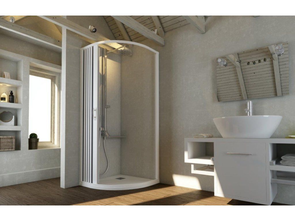 Plastový čtvrtkruhový sprchový kout LUNA NEW vynikají vysoce kvalitním zpracováním a spolehlivou funkčností všech součástí a materiálů. Zástěnu LUNA NEW dodáváme standardně s vodícími profily s rádiusem R550, ale lze ji vyrobit i s rádiusy R50, R60 atd).