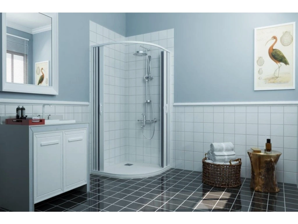 - čtvercová zástěna se zavíráním do středu, nebo ke stěně