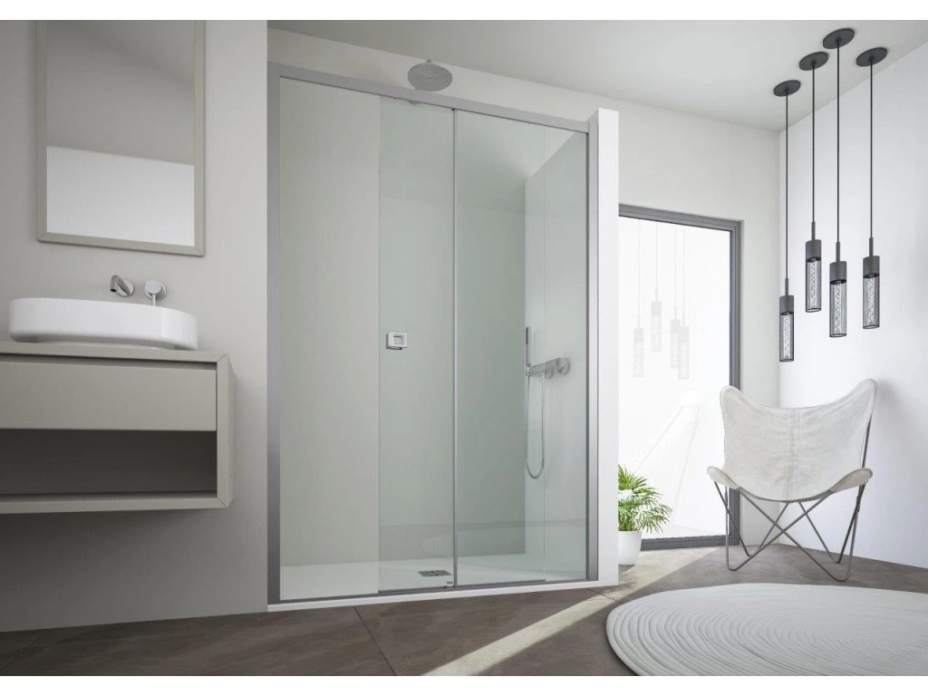 Posuvné skleněné stěny řeší atypické vstupy v prostorných koupelnách. Vytváří velmi luxusní dojem, který je podpořen výrazným madlem. Dveře se dodávají v levém nebo pravém provedení. Bezpečnostní sklo je opatřeno povrchovou úpravou AQUA CLEAN pro jednodušší údržbu.