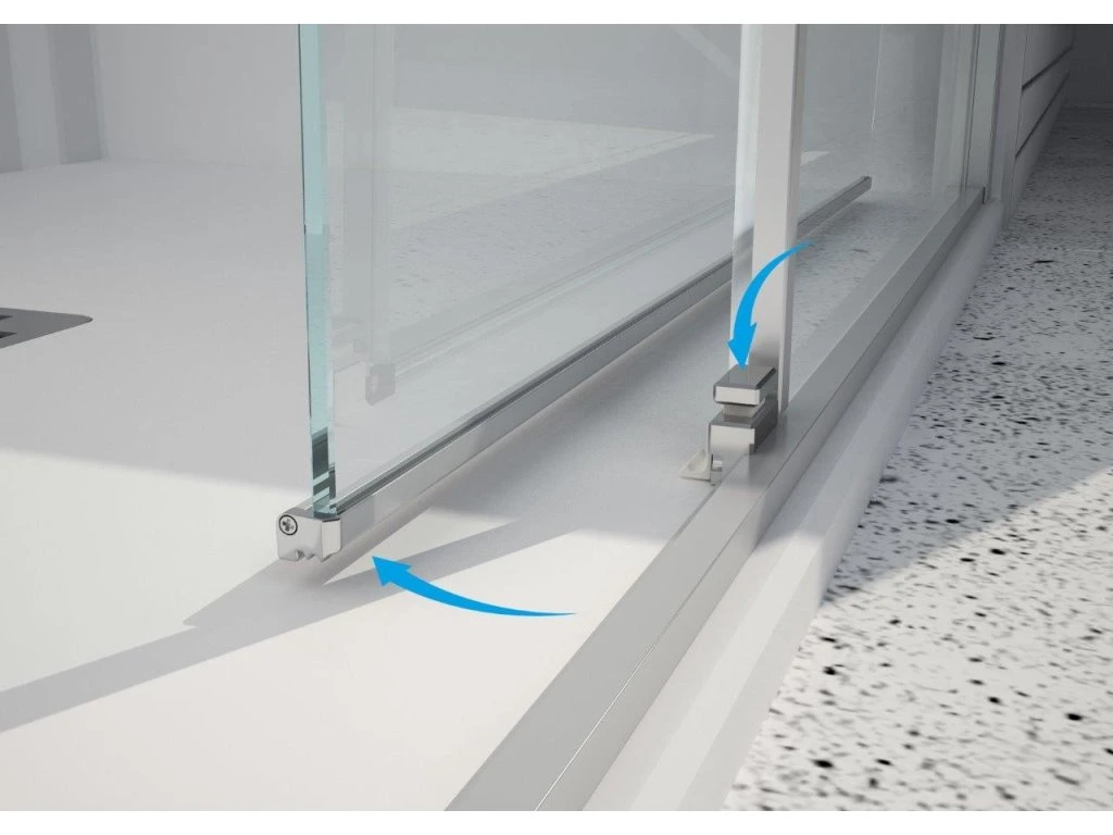 Posuvné skleněné stěny řeší atypické vstupy v prostorných koupelnách. Vytváří velmi luxusní dojem, který je podpořen výrazným madlem. Dveře se dodávají v levém nebo pravém provedení. Bezpečnostní sklo je opatřeno povrchovou úpravou AQUA CLEAN pro jednodušší údržbu.