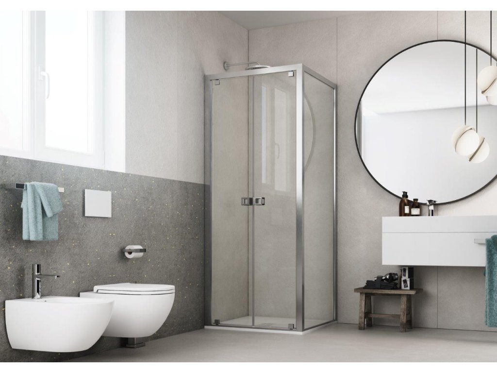 2-křídlé "lítací" skleněné dveře ESSENCE N2B nabízí jednoduché a přitom praktické řešení bez použití pohyblivých - posuvných dveří, ale s maximálním vstupem. Vytváří velmi luxusní dojem, který je podpořen výrazným madlem. Dveře se dodávají universálním levém / pravém provedení. Bezpečnostní sklo lze opatřit za příplatek povrchovou úpravou AQUA CLEAN pro jednodušší údržbu. Dá se osadit jak na sprchové vaničky, tak i přímo na podlahu. Zástěny jsou vyrobeny z 6 mm bezpečnostního skla.