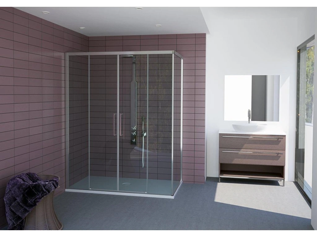 Bezbariérové posuvné čtyřdílné skleněné stěny URBAN ESSENCE N2FS řeší atypické vstupy v prostorných koupelnách. Vytváří velmi luxusní dojem, který je podpořen výrazným chromovým madlem. Lze dokoupit jednu nebo dvě boční pevné stěny ESSENCE F1AB, pomocí kterých poskládáte praktický sprchový kout. Pevná stěna ESSENCE F1 je dodávána v univerzálním levém / pravém provedení.