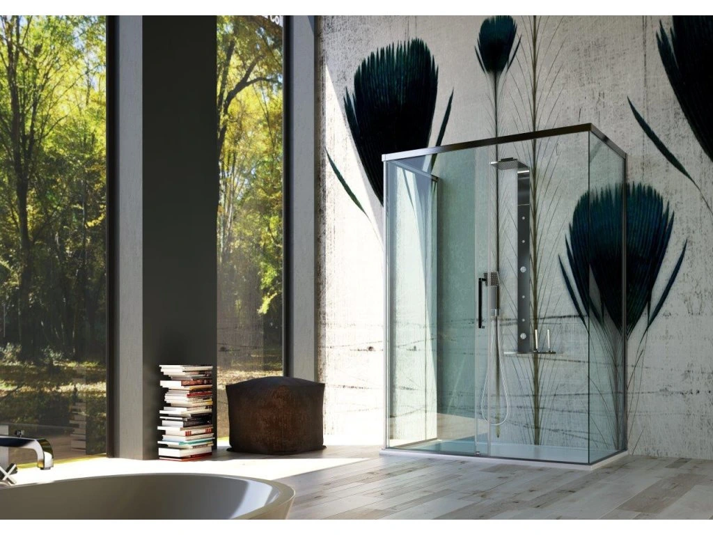 Posuvné bezbariérové skleněné stěny řeší atypické vstupy v prostorných koupelnách. Vytváří velmi luxusní dojem, který je podpořen výrazným chromovým madlem. Dodává se buď v levém SX nebo pravém DX provedení. Lze dokoupit jednu nebo dvě boční pevné stěny Essence F1, pomocí kterých poskládáte praktický sprchový kout. Pevná stěna je dodávána v univerzálním levém / pravém provedení.