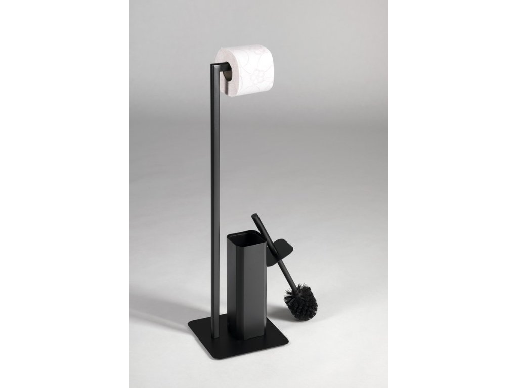 Gedy FELIX stojan s držákem na toaletní papír a WC štětkou, hranatý, černá mat 133214