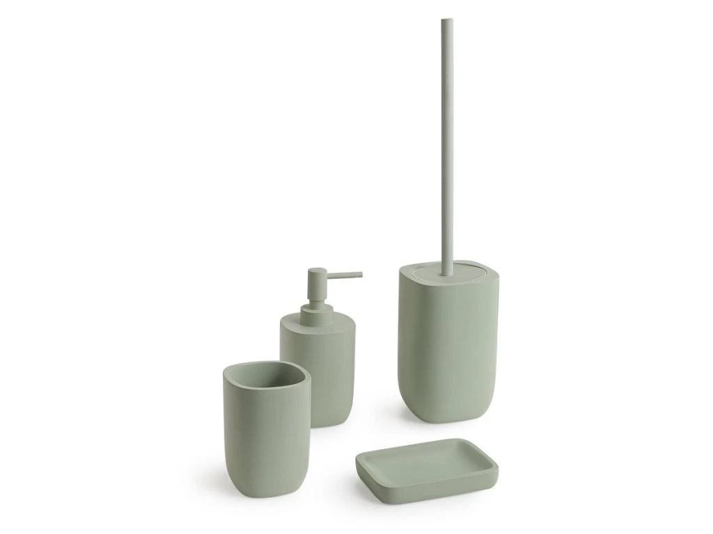 Koupelnové doplňky YLENIA z polyresinu v moderním jednoduchém designu kombinují praktičnost s estetikou. V nabídce matně bílé, matně černé, šalvějově zelené, starorůžové a béžovošedé barvě.