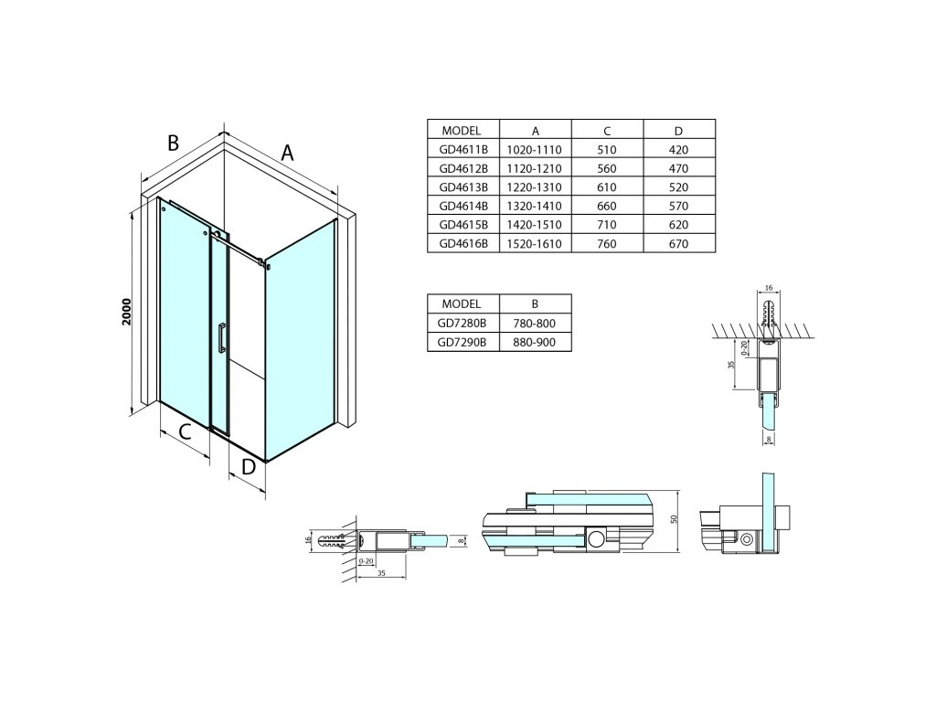 - Pro vyšší stabilitu doporučujeme instalovat zástěnu se vzpěrou GDV300/GDV300B