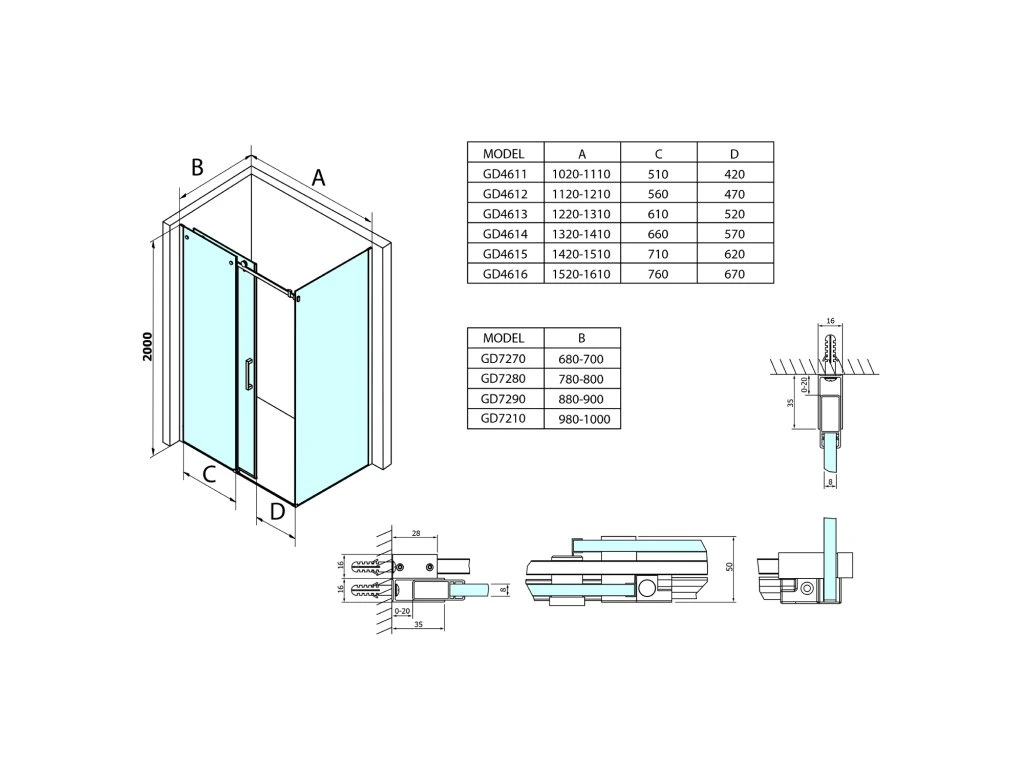 - Pro vyšší stabilitu doporučujeme instalovat zástěnu se vzpěrou GDV300/GDV300B