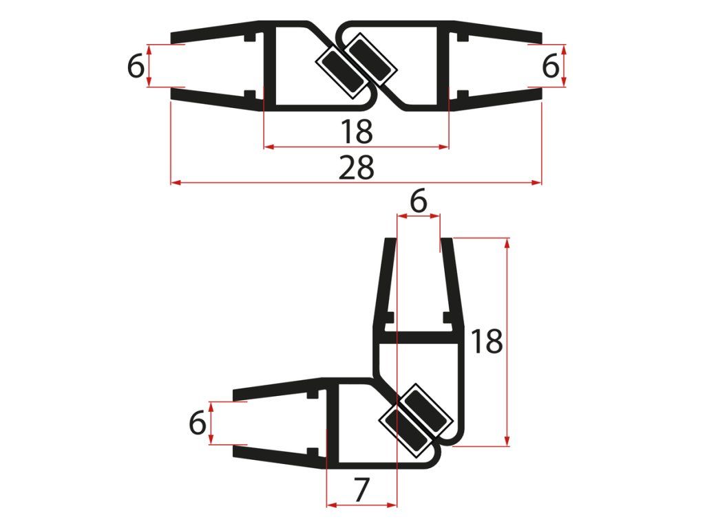 Gelco Set magnetických těsnění 45°pro sklo 6/6mm, 1900mm, černá (2ks) NDGS09B