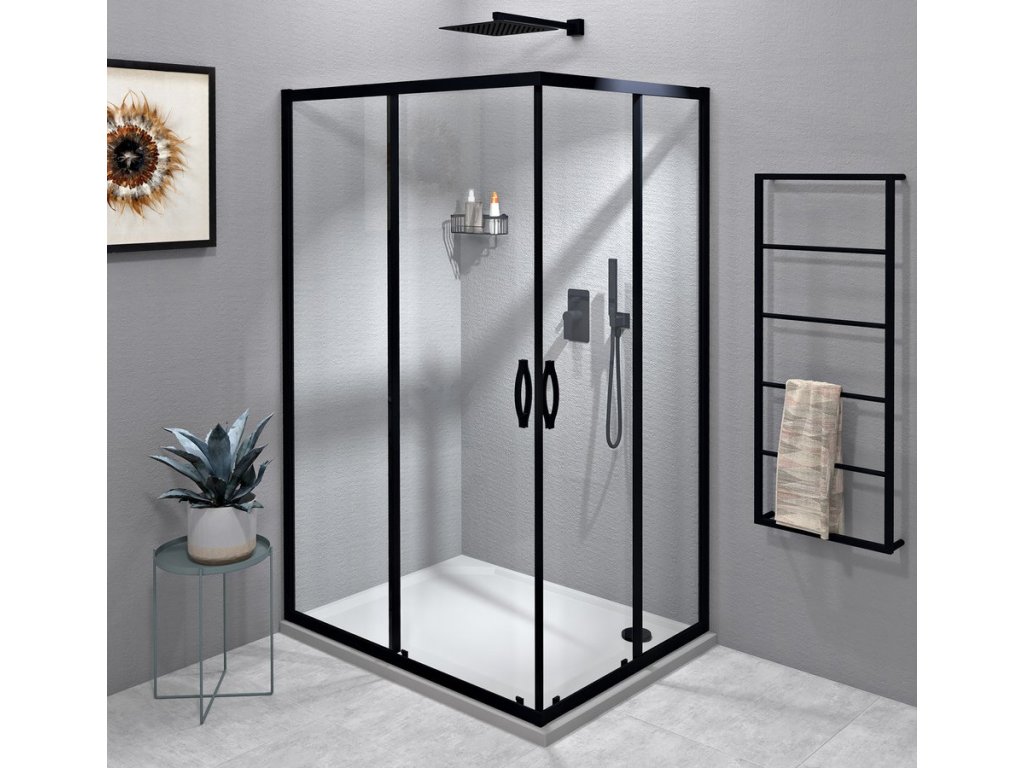• Čtvercové a obdélníkové zástěny s rohovým vstupem vytvoříte spojením dvou posuvných dveří pro rohový vstup