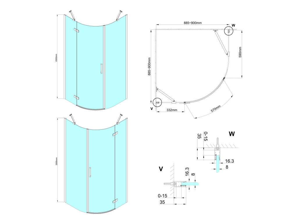 Čtvercová/obdélníková zástěna s rohovým vstupem