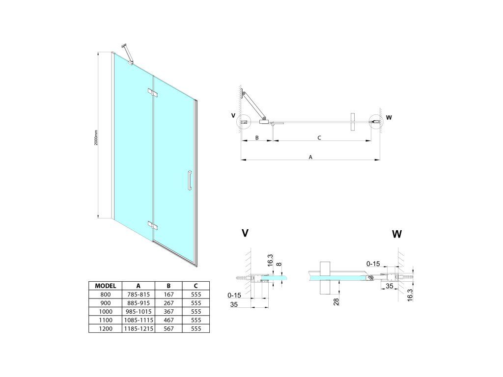 - Zkracovatelné rohové vzpěry, které lze přizpůsobit pro rozměr zástěny