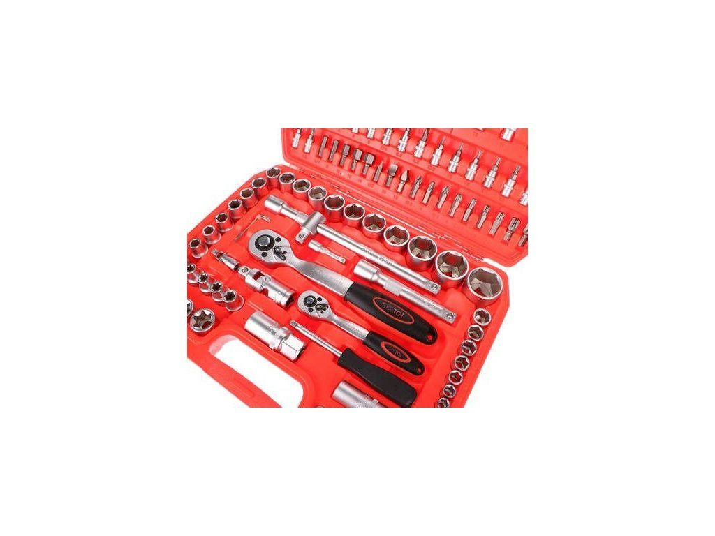 Chcete mít v dílně kvalitní gola sadu, která bez obav vydrží i náročné podmínky? Pořiďte si set CRV 108 Profi od značky Sixtol, který využije každý domácí kutil i profesionální automechanik. V červeném plastovém kufru s kovovými panty a přezkami najdete 108 kusů nářadí. Díky praktickému držadlu ho navíc snadno přenesete, sada je tedy ideální na cesty.