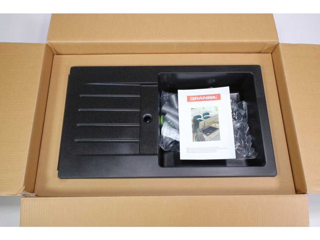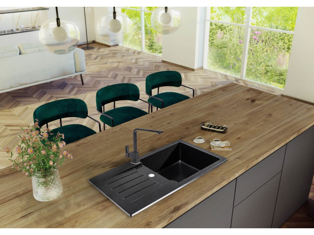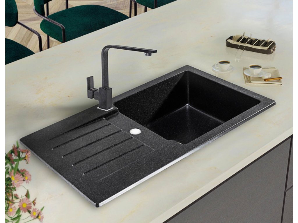 - žulový kuchyňský dřez v černé barvě s odkapem