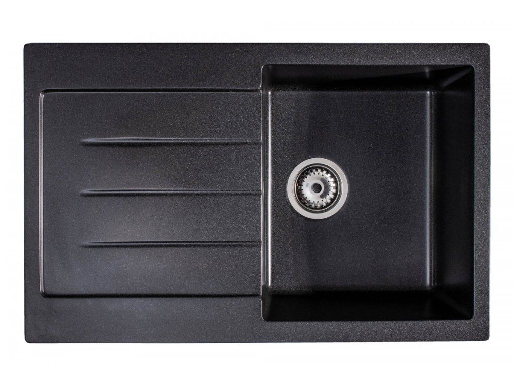 - žulový kuchyňský dřez v černé barvě s odkapem