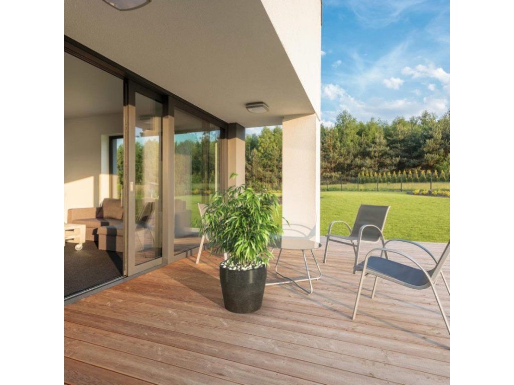 Výhodou granitových květináčů je jejich široká škála barev (antracitové, černé, šedé a béžové), snadno je tedy doladíte se vzhledem okolí např. se zahradním nábytkem na terase, s podlahou kolem bazénu či s barvou vchodových dveří. Perfektně zapadnou do jakékoli interiéru i exteriéru.