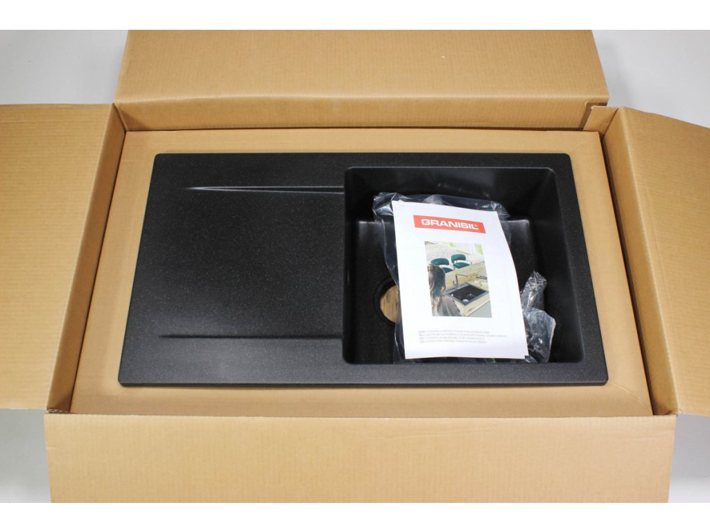 - žulový kuchyňský dřez v černé barvě s odkapem