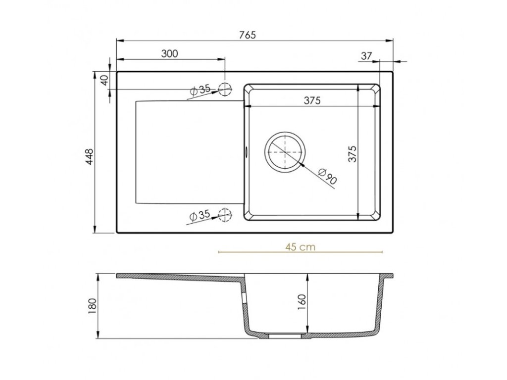 - dřez je určen pro horní montáž