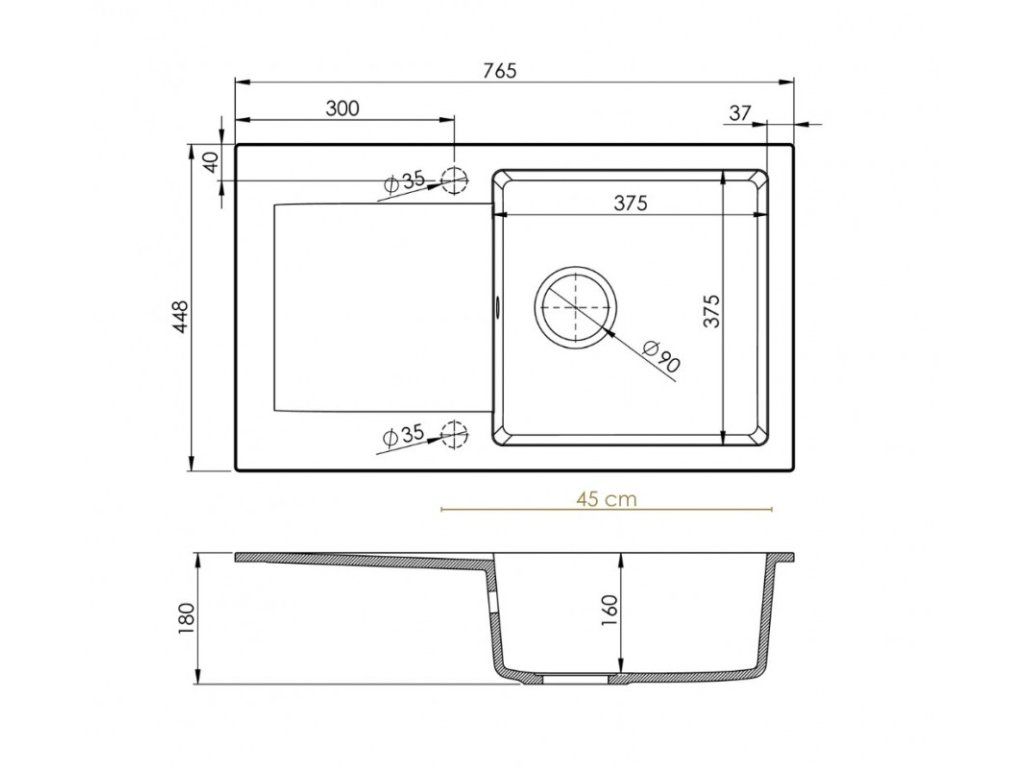 Kuchyňský dřez Proba 765.0 s dlouhou odkapovou plochou poskytne větší pohodlí a rozšíří pracovní plochu. Odkapávač je účelně tvarovaný s drážkami, které usnadňují odtok vody do dřezu. Rovněž plocha slouží i pro sušení jednotlivého nádobí.