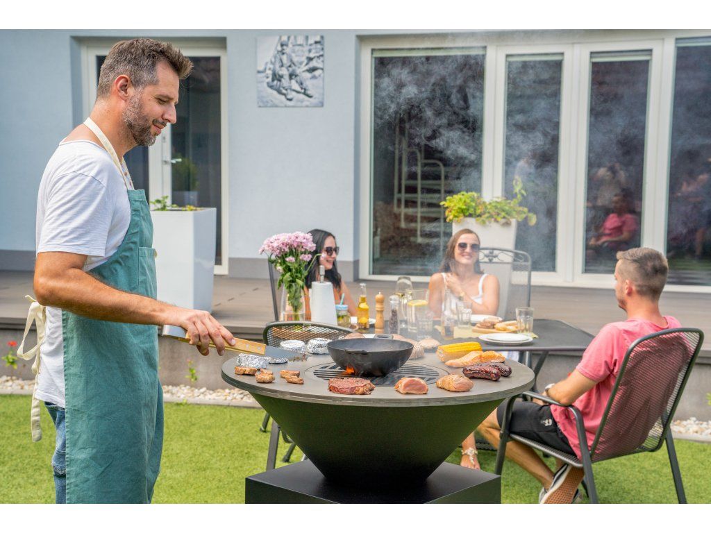 - Víc tepelných zón – grilovat můžete na vyvýšeném roštu nebo nad topeništěm na celé planše v různých intenzitách žáru