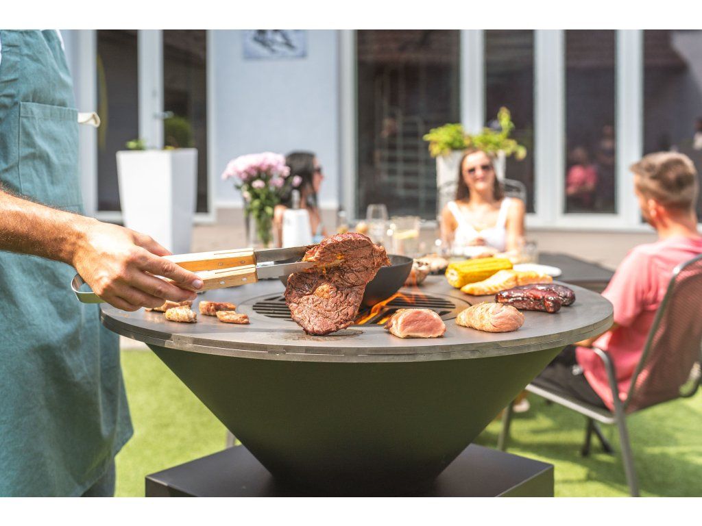 Gril vyrobený kompletně z uhlíkové oceli nabízí vynikající tepelnou vodivost, vysokou pevnost, schopnost snášet vysoké teploty a přirozený nepřilnavý povrch. Je ideální pro náročné grilování a dlouhodobé používání. Při správné údržbě je tento atraktivní a bytelný gril nejen výkonný, ale také esteticky přitažlivý doplněk vaší venkovní kuchyně nebo zahrady.