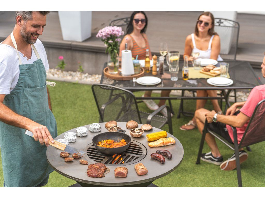 - Rovnoměrné teplo – kruhová grilovací plocha (plancha) z uhlíkové oceli rovnoměrně rozvádí teplo