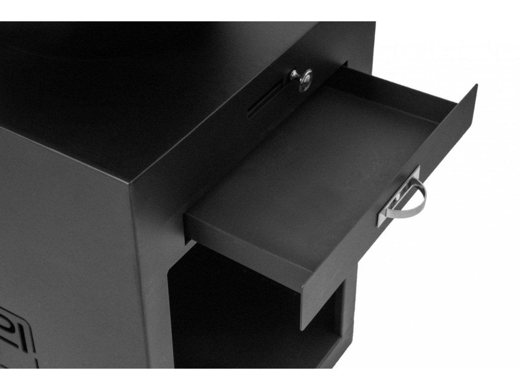 Horní část grilu tvoří topeniště s výsuvným popelníkem a dominantou grilu je obrovská grilovací plocha – plancha o tloušťce 1 cm s mírným náklonem směrem do středu.